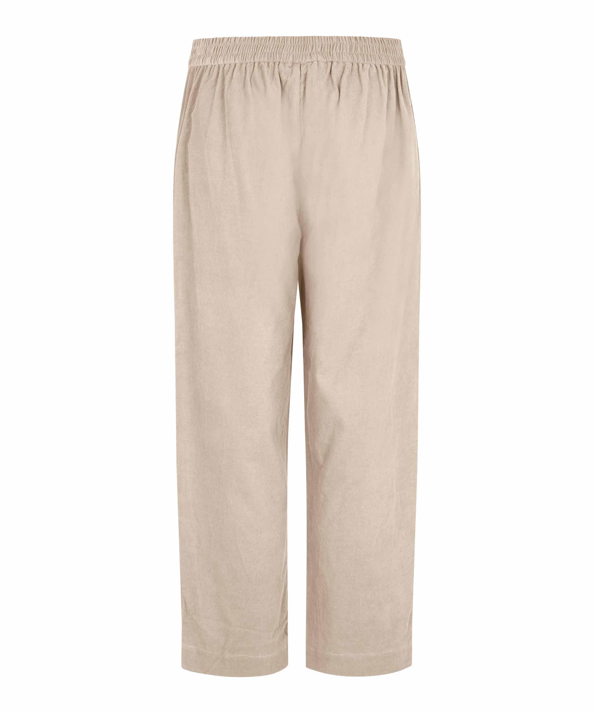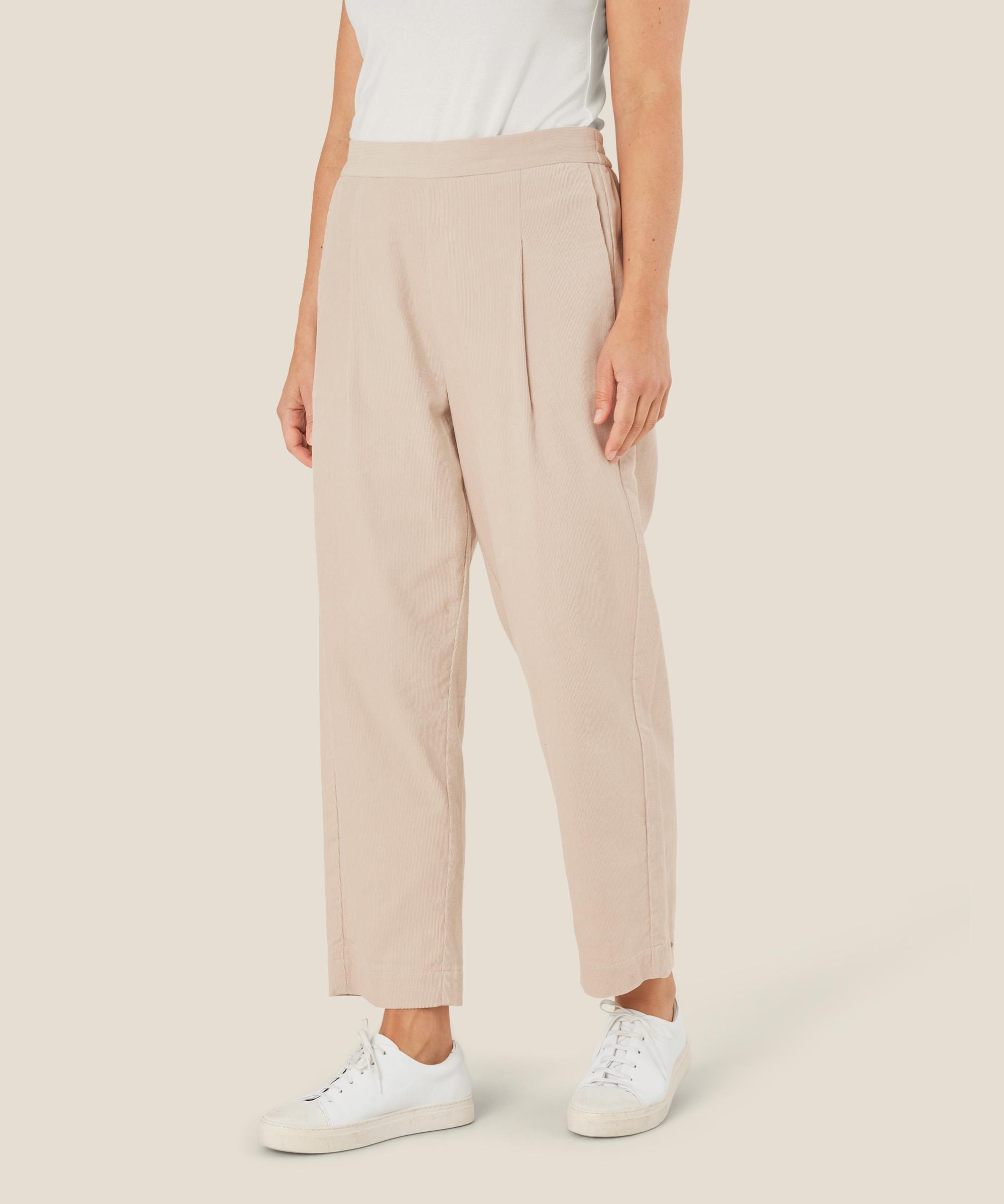 Disse fløyelsbuksene er så myke og velsittende at du ikke vil ha på deg noe annet. Den er designet med strikk i livet bak, lommer i sidene og vakre folder foran som fremhever midjen. Buksen har en avslappet passform med løse ben som går litt inn nederst og har en liten åpning ved anklene. Bruk buksen med en feminin skjorte, en mønstret topp eller en avslappet strikk – den kan alt. Du kan også lage en komplett fløyelslook med vår matchende jakke..