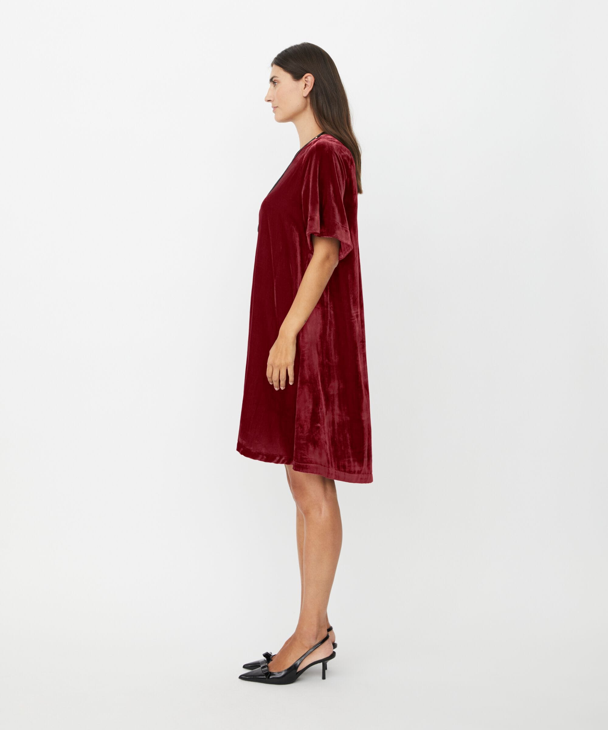 Kjolen kommer i den varme fargen "tawny port," en flott og dyp nyanse som gir et sofistikert uttrykk.