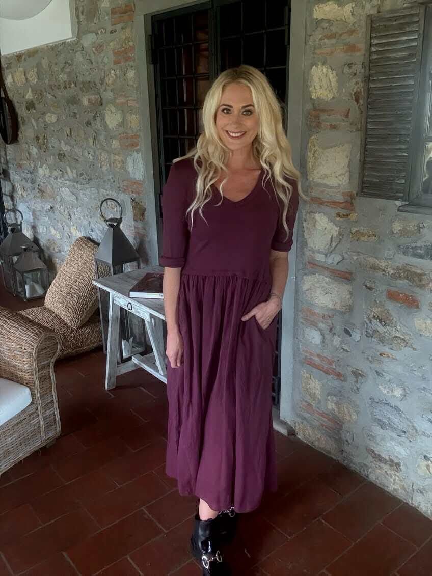 MOONDUST Rib L/SL Dress Kjole Bordeaux