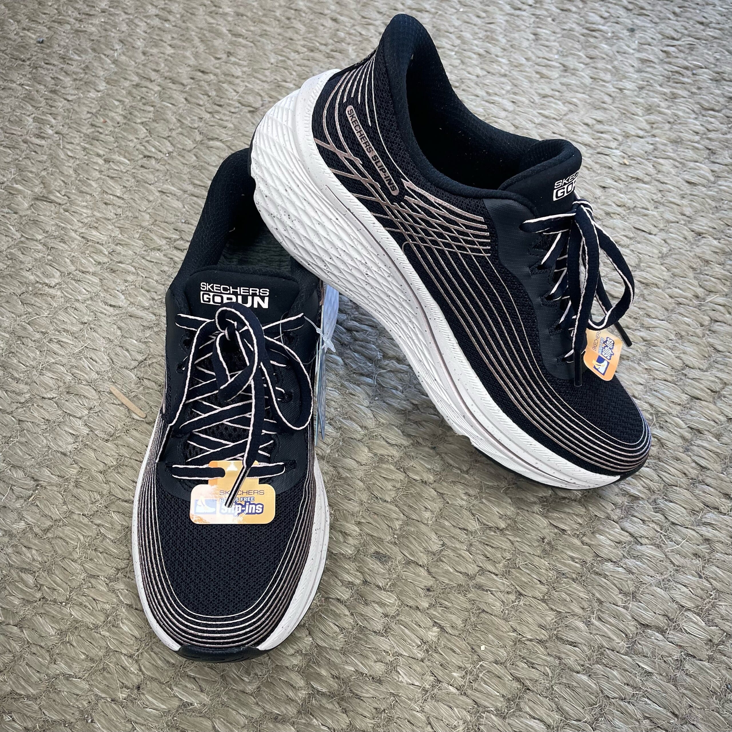 Stilige sneakers fra Skechers med rosegull detaljer og god demping.